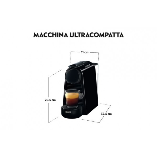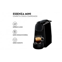 De’Longhi Essenza Mini EN85.B. Tipo di prodotto: Macchina per caffè a capsule, Tipologia macchina del caffé: Automatica/Manuale, Capacità tanica acqua: 0,6 L, Tipologia di caffè utilizzato: Capsule caffè, Vaschetta per caffè preparato: Tazza, Numero di erogatori: 1. Potenza: 1150 W. Colore del prodotto: Nero