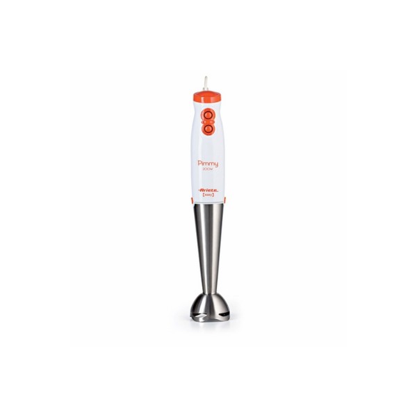 Ariete 881 Pimmy 200 - Frullatore a immersione - Gambo rimovibile e lame in Acciaio Inox - 2 velocità - 200 Watt - Bianco e Arancio. Tipo: Frullatore ad immersione, Colore del prodotto: Arancione, Bianco, Nome del colore: Bianco/Arancione. Tipo di controllo: Pulsanti. Materiale della scocca: Plastica, Acciaio inox, Materiale lama: Acciaio inox. Potenza: 200 W, Alimentazione: AC. Larghezza: 65 mm, Profondità: 65 mm, Altezza: 375 mm
