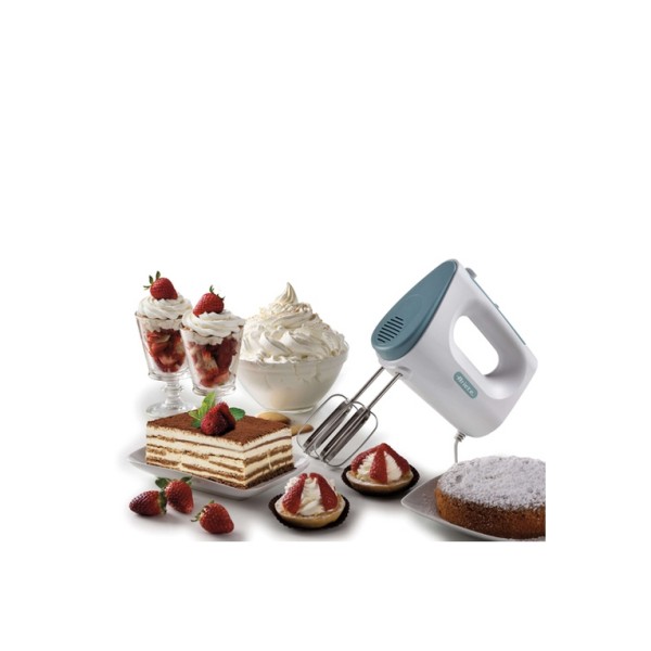 Ariete 1545 Sbattitore Breakfast, 450W, 5 velocità, Funzione turbo, 2 fruste, White & Aegean teal. Tipo: Sbattitore manuale, Colore del prodotto: Bianco, Azzurro, Funzioni mixer: Impasto, Miscelatura. Materiale lama: Acciaio inox. Potenza: 450 W, Tipologia alimentazione: AC. Larghezza: 90 mm, Profondità: 190 mm, Altezza: 160 mm. Larghezza imballo: 95 mm, Profondità imballo: 200 mm, Altezza imballo: 210 mm
