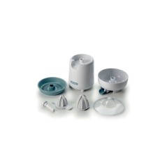 Ariete 417 Spremiagrumi Breakfast, Spremiagrumi, 40W, 2 coni di spremitura, Coperchio di protezione, Beccuccio antigoccia, Rotazione a destra e a sinistra, Piedini antiscivolo, Bianco & Celeste. Colore del prodotto: Bianco, Nome del colore: Bianco, Cono pressa grande: 1 pz. Potenza: 40 W. Larghezza: 150 mm, Profondità: 165 mm, Altezza: 255 mm. Peso dell'imballo: 1 kg. Quantità per pacco: 1 pz