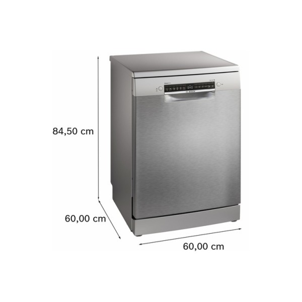 Bosch Serie 4 SMS4HMI05E Lavastoviglie da libera installazione 14 coperti Acciaio spazzolato anti-impronta Classe D. Posizionamento dell'apparecchio: Libera installazione, Dimensione: Dimensione massima (60 cm), Colore della porta: Acciaio inox. Numero di coperti: 14 coperti, Classe emissione rumore: B, Emissione acustica: 42 dB. Regolazione piedini: 2 cm, Applicazioni per il controllo supportate: Bosch Home Connect. Classe efficienza energetica: D, Consumo di acqua per ciclo: 9 L, Consumo energetico per 100 cicli: 85 kWh. Larghezza: 600 mm, Profondità: 600 mm, Altezza: 850 mm