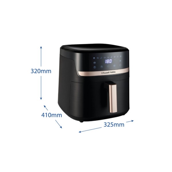 Russell Hobbs SatisFry Heißluftfritteuse. Tipo di prodotto: Friggitrice ad aria calda, Capacità: 8,3 L, Temperatura (min): 40 °C. Tipo di costruzione: Singolo, Colore del prodotto: Nero, Tipo di controllo: Touch. Potenza: 1800 W. Altezza: 320 mm