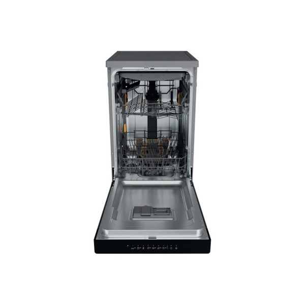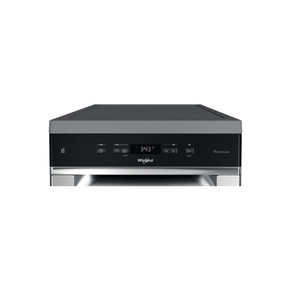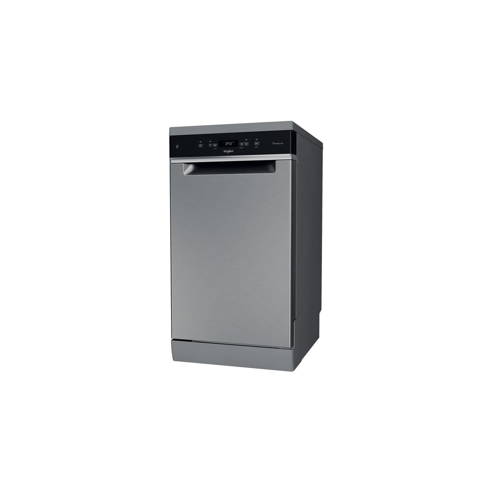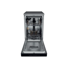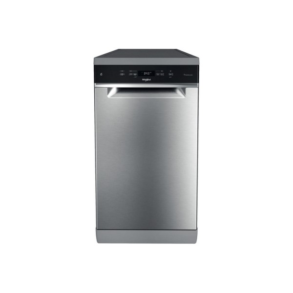 Whirlpool Lavastoviglie FS 45 cm classe D, 11 coperti, Terzo cesto, 6° senso, PowerCleanPro, Inox. Posizionamento dell'apparecchio: Libera installazione, Dimensione: Compatta (45 cm), Colore della porta: Acciaio inox. Numero di coperti: 11 coperti, Classe emissione rumore: C, Emissione acustica: 46 dB. Classe efficienza energetica: D, Consumo di acqua per ciclo: 8,7 L, Consumo energetico per 100 cicli: 72 kWh. Larghezza: 450 mm, Profondità: 590 mm, Altezza: 850 mm. Tecnologie Whirlpool (lavaggio stoviglie): 6TH SENSE, FlexiSpace, Natural Dry, Powerclean Pro