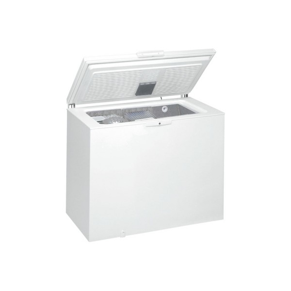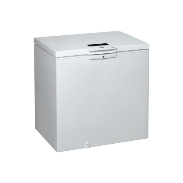 Whirlpool Congelatore a pozzetto - WHE2535 FO 2. Capacità netta congelatore: 255 L, Classe climatica: SN-T, Capacità di congelamento: 11,5 kg/24h, Autonomia senza energia elettrica: 32 h, Emissione acustica: 40 dB, Punteggio: 4*. Classe efficienza energetica: E, Consumo energetico annuo: 218 kWh. Colore del prodotto: Bianco