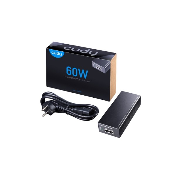 Cudy POE300. Tipo di interfaccia Ethernet: Gigabit Ethernet, Velocità trasferimento Ethernet LAN: 10,100,1000 Mbit/s, Standard di rete: IEEE 802.3af, IEEE 802.3at. Colore del prodotto: Nero, Indicatori LED: Potenza, Polarità e assegnazione del pin: 1/2 (-), 3/6 (+),4/5 (+), 7/8 (-). Power over Ethernet (PoE): 50 V, Potenza in uscita: 60 W, Adattatore di voltaggio input AC: 100 - 240 V. Larghezza: 145 mm, Profondità: 60 mm, Altezza: 40 mm. Numero di prodotti inclusi: 1 pz