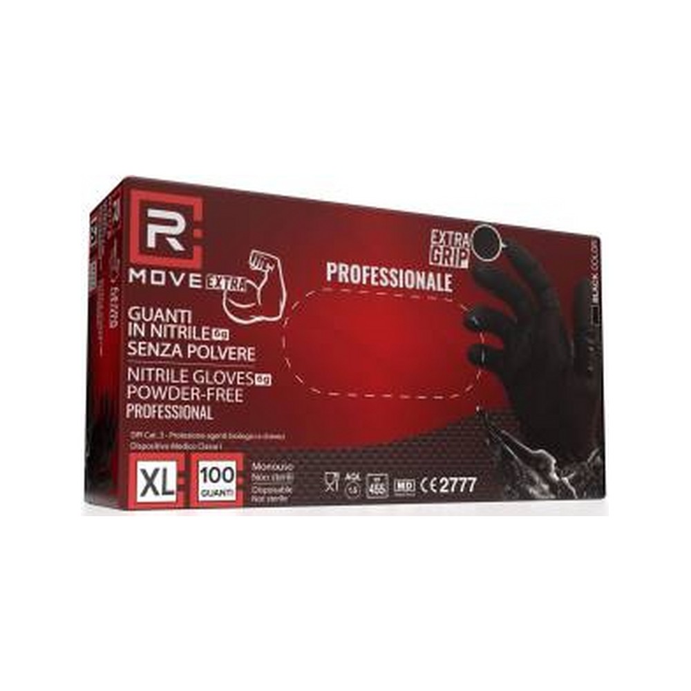RMove 1Conf. da 100pz Tg.XL 6gr da Lavoro - Guanti Nitrile Nero Senza Polvere