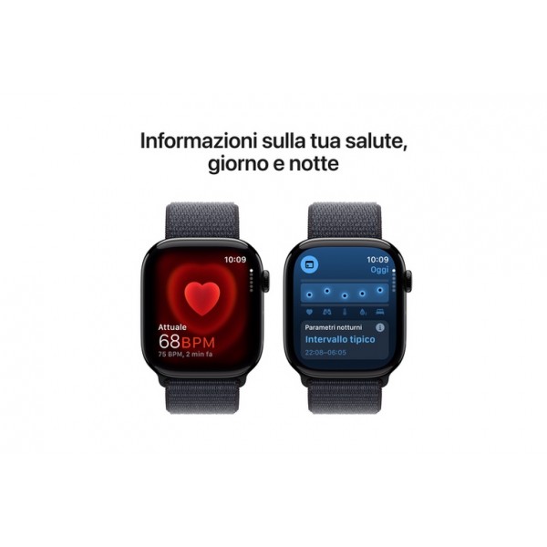Apple Watch Series 10 Serie 10 GPS 46mm Cassa in Alluminio color Jet Black con Sport Loop. Tecnologia display: OLED, Risoluzione del display: 416 x 496 Pixel, Touch screen. Memoria flash: 64 GB. Wi-Fi. GPS (satellitare). Peso: 36,4 g. Impermeabile fino a: 50 m, Materiale cinturino: Tessile, Colore cinturino: Nero, Dimensione del cinturino: Taglia unica. Sistema operativo incluso: watchOS 11