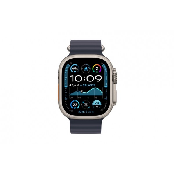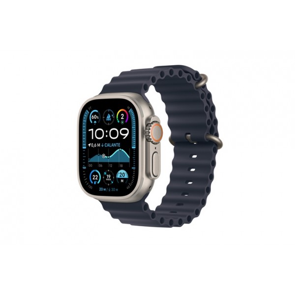 Apple Watch Ultra 2 GPS + Cellular 49mm Cassa in Titanio con Navy Ocean Band. Tecnologia display: OLED, Risoluzione del display: 410 x 502 Pixel, Touch screen. Memoria flash: 64 GB. Wi-Fi. GPS (satellitare). Peso: 61,4 g. Impermeabile fino a: 100 m, Colore cinturino: Blu marino. Sistema operativo incluso: watchOS 11