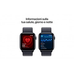 Apple Watch SE GPS 44mm Cassa Alluminio Mezzanotte con Inchiostro Sport Loop. Tecnologia display: OLED, Risoluzione del display: 368 x 448 Pixel, Touch screen. Memoria flash: 32 GB. Wi-Fi. GPS (satellitare). Peso: 32,9 g. Impermeabile fino a: 50 m, Materiale cinturino: Tessile, Colore cinturino: Blu, Dimensione del cinturino: Taglia unica. Sistema operativo incluso: watchOS 11