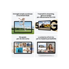 Samsung Galaxy Tab A9+ . Dimensioni diagonale schermo: 27,9 cm (11"), Risoluzione del display: 1920 x 1200 Pixel. Capacità memoria interna: 128 GB. Famiglia processore: Qualcomm Snapdragon, Modello del processore: SM6375. RAM installata: 6 GB. Risoluzione fotocamera posteriore (numerico): 8 MP, Tipo di fotocamera posteriore: Fotocamera singola, Risoluzione fotocamera frontale (numerico): 5 MP. Wi-Fi standard: Wi-Fi 5 (802.11ac). Assistenza funzione GPS (A-GPS). Lettore di schede integrato. Peso: 480 g. Sistema operativo incluso: Android 13. Colore del prodotto: Grafite
