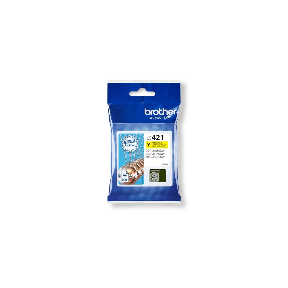 Brother LC421Y. Tipo di fornitura: Confezione singola, Resa in pagine dell'inchiostro a colori: 200 pagine, Colori di stampa: Giallo, Quantità per pacco: 1 pz