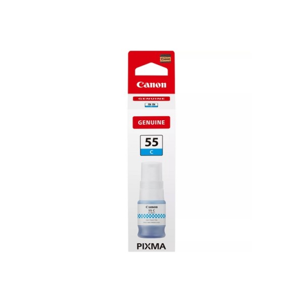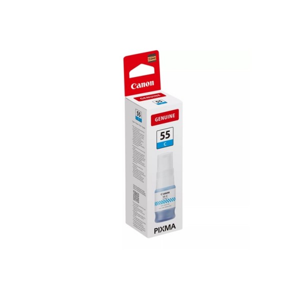 Canon GI-55C. Tipo di fornitura: Confezione singola, Volume dell'inchiostro a colori: 40 ml, Colori di stampa: Ciano, Quantità per pacco: 1 pz, Resa in pagine dell'inchiostro a colori: 3000 pagine