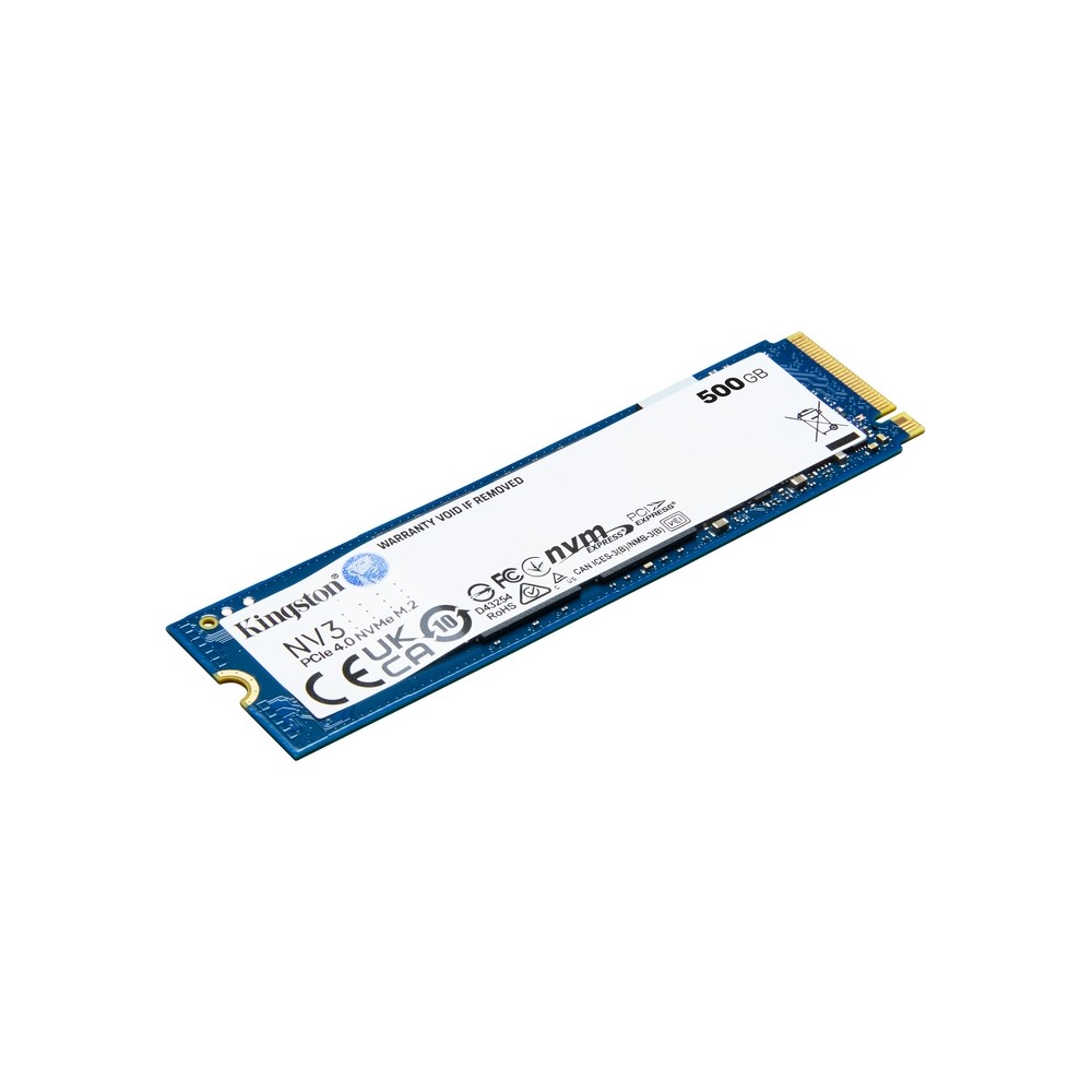 Kingston Technology 500G NV3 M.2 2280 NVMe SSD. Capacità SSD: 500 GB, Dimensione SSD: M.2, Velocità di lettura: 5000 MB/s, Velocità di scrittura: 3000 MB/s, Componente per: PC/PC portatile