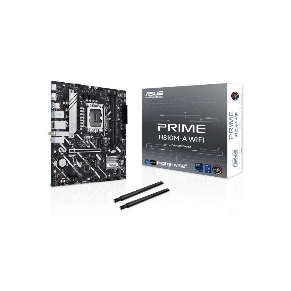 ASUS PRIME H810M-A WIFI. Produttore processore: Intel, Presa per processore: LGA 1851 (Socket V1), Processori compatibili: Intel Core Ultra (Series 2). Tipi di memoria supportati: DDR5-SDRAM, RAM massima supportata: 128 GB, tipo di slot di memoria: DIMM. Interfacce dell'unità di archiviazione supportate: M.2, SATA III, Tipi di unità di archiviazione supportate: HDD & SSD, Livelli RAID: 0, 1, 5, 10. Tipo di interfaccia Ethernet: Gigabit Ethernet, Wi-Fi standard: Wi-Fi 6 (802.11ax), Standard Wi-Fi: Wi-Fi 6 (802.11ax). Componente per: PC, Fattore di forma scheda madre: micro ATX, Famiglia di chipset per scheda madre: Intel