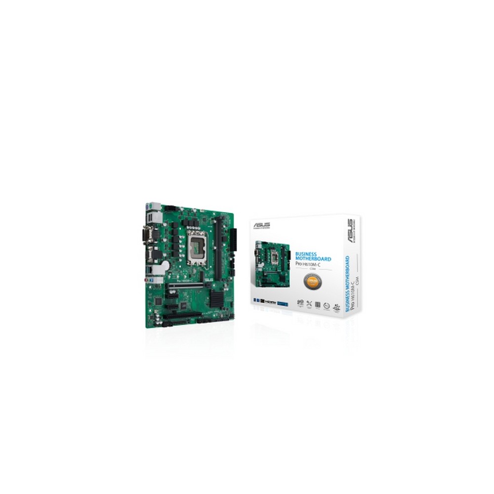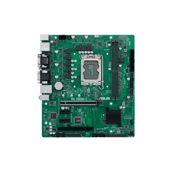 ASUS Pro H610M-C-CSM. Produttore processore: Intel, Presa per processore: LGA 1700, Processori compatibili: Intel® Celeron®, Intel® Core™ i3, Intel® Core™ i5, Intel® Core™ i7, Intel® Core™ i9, Intel® Pentium®. Tipi di memoria supportati: DDR5-SDRAM, RAM massima supportata: 64 GB, tipo di slot di memoria: DIMM. Interfacce dell'unità di archiviazione supportate: M.2, SATA III, Tipi di unità di archiviazione supportate: HDD & SSD. Tipo di interfaccia Ethernet: Gigabit Ethernet. Componente per: PC, Fattore di forma scheda madre: micro ATX, Famiglia di chipset per scheda madre: Intel