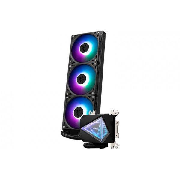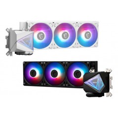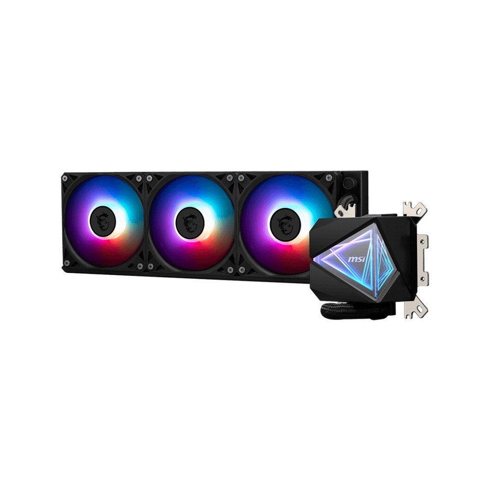 MSI MAG CORELIQUID I360. Tipo: Raffreddatore di liquidi tutto in uno, Diametro del ventilatore: 12 cm, Tipo di cuscinetto: Loop Dynamic Bearing (LDB). Larghezza: 69,1 mm, Profondità: 74 mm, Altezza: 62,5 mm. Colore del prodotto: Nero