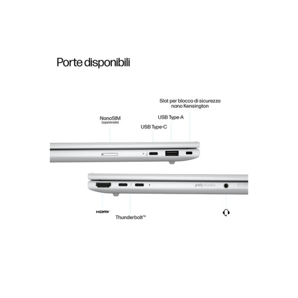 HP EliteBook 8 G1i Next Gen AI PC Wolf Pro Security Edition. Tipo di prodotto: Computer portatile, Fattore di forma: Clamshell. Famiglia processore: Intel Core Ultra 7, Modello del processore: 258V. Dimensioni diagonale schermo: 40,6 cm (16"), Tipologia HD: WUXGA, Risoluzione del display: 1920 x 1200 Pixel. RAM installata: 32 GB, Tipo di RAM: LPDDR5x-SDRAM. Capacità totale di archiviazione: 1 TB, Supporto di memoria: SSD. Modello scheda grafica integrata: Intel Arc Graphics. Sistema operativo incluso: Windows 11 Pro. Colore del prodotto: Argento. Peso: 1,77 kg