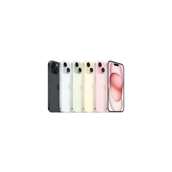 Apple iPhone 15 . Dimensioni diagonale schermo: 15,5 cm (6.1"), Risoluzione del display: 2556 x 1179 Pixel. Famiglia processore: Apple, Modello del processore: A16. Capacità memoria interna: 128 GB. Risoluzione fotocamera posteriore (numerico): 48 MP, Tipo di fotocamera posteriore: Doppia fotocamera. Capacità della scheda SIM: Doppia SIM. Sistema operativo incluso: iOS 17. Colore del prodotto: Nero. Peso: 171 g