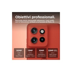 Motorola edge 50 Neo . Dimensioni diagonale schermo: 16,1 cm (6.36"), Risoluzione del display: 2670 x 1220 Pixel. Famiglia processore: MediaTek, Modello del processore: 7300. Capacità della RAM: 8 GB, Tipo di RAM: LPDDR4X, Capacità memoria interna: 256 GB. Risoluzione fotocamera posteriore (numerico): 50 MP, Tipo di fotocamera posteriore: Tripla fotocamera. Capacità della scheda SIM: Doppia SIM. Sistema operativo incluso: Android 14. Capacità della batteria: 4310 mAh. Colore del prodotto: Rosso. Peso: 171 g