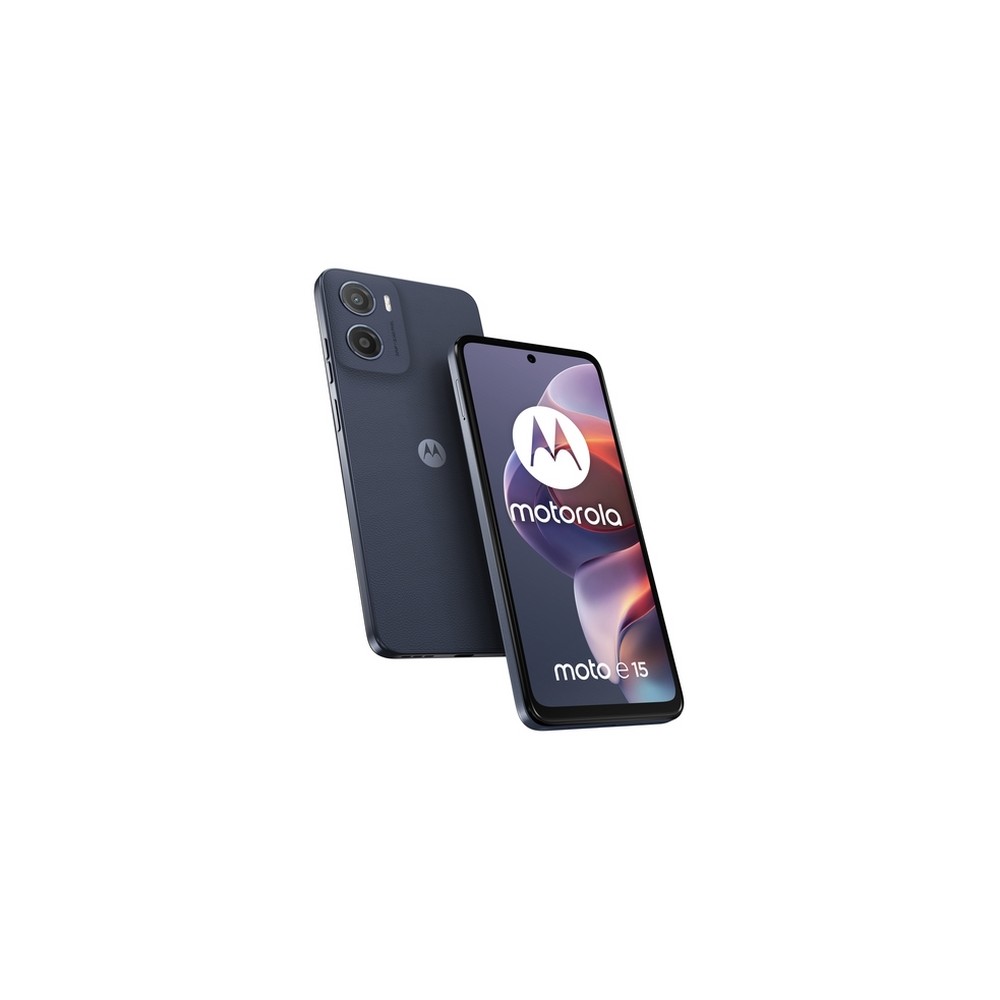 Motorola moto e15. Dimensioni diagonale schermo: 16,9 cm (6.67"), Risoluzione del display: 1604 x 720 Pixel. Famiglia processore: MediaTek, Modello del processore: Helio G81 Extreme. Capacità della RAM: 2 GB, Tipo di RAM: LPDDR4X, Capacità memoria interna: 64 GB. Risoluzione fotocamera posteriore (numerico): 32 MP, Tipo di fotocamera posteriore: Fotocamera singola. Capacità della scheda SIM: Doppia SIM. Sistema operativo incluso: Android 14 Go edition. Capacità della batteria: 5200 mAh. Colore del prodotto: Blu. Peso: 188,8 g