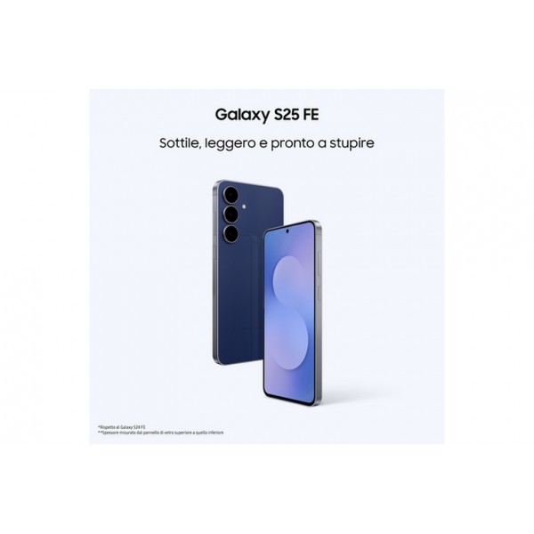 Samsung Galaxy S25 FE, Smartphone AI, Display Dynamic AMOLED 2X 6.7'', Fotocamera 50MP, 8GB RAM, 256GB, Batteria 4.900 mAh, Jetblack. Dimensioni diagonale schermo: 17 cm (6.7"), Risoluzione del display: 1080 x 2340 Pixel. Famiglia processore: Samsung Exynos, Modello del processore: 2400. Capacità della RAM: 8 GB, Capacità memoria interna: 256 GB. Risoluzione fotocamera posteriore (numerico): 50 MP, Tipo di fotocamera posteriore: Tripla fotocamera. Capacità della scheda SIM: Doppia SIM. Capacità della batteria: 4900 mAh. Colore del prodotto: Nero. Peso: 190 g