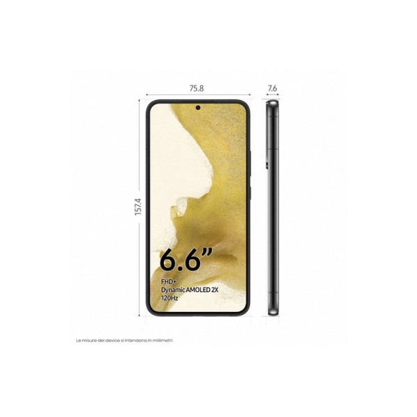 Samsung Galaxy S22+ 5G Display 6.6'' Dynamic AMOLED 2X, 4 fotocamere, RAM 8 GB, 256 GB, 4.500mAh, Phantom Black. Dimensioni diagonale schermo: 16,8 cm (6.6"), Risoluzione del display: 2340 x 1080 Pixel. Frequenza del processore: 2,8 GHz, Famiglia processore: Samsung Exynos, Modello del processore: 2200. Capacità della RAM: 8 GB, Capacità memoria interna: 256 GB. Risoluzione fotocamera posteriore (numerico): 50 MP, Tipo di fotocamera posteriore: Tripla fotocamera. Capacità della scheda SIM: Doppia SIM. Sistema operativo incluso: Android 12. Capacità della batteria: 4500 mAh. Colore del prodotto: Nero. Peso: 195 g