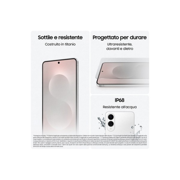 Samsung Galaxy S25 Edge, Smartphone AI, Display 6.7'' QHD+ Dynamic AMOLED 2X, Fotocamera 200MP, RAM 12GB, 512GB, 3.900 mAh, Titanium Jetblack. Dimensioni diagonale schermo: 17 cm (6.7"), Risoluzione del display: 3120 x 1440 Pixel. Famiglia processore: Qualcomm Snapdragon, Modello del processore: 8 Elite. Capacità della RAM: 12 GB, Capacità memoria interna: 512 GB. Risoluzione fotocamera posteriore (numerico): 200 MP, Tipo di fotocamera posteriore: Doppia fotocamera. Capacità della scheda SIM: Doppia SIM. Sistema operativo incluso: Android 15. Capacità della batteria: 3900 mAh. Colore del prodotto: Nero. Peso: 163 g