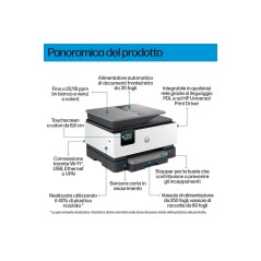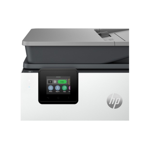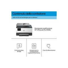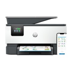 HP OfficeJet Pro 9120b Wireless All-in-One Colore Stampante, Stampa fronte/retro; fotocopiatrice, scanner. Tecnologia di stampa: Getto termico d'inchiostro, Stampa: Stampa a colori, Risoluzione massima: 4800 x 1200 DPI, Velocità di stampa (colore, qualità normale, A4/US Letter): 16 ppm. Copia: Copia a colori, Risoluzione di copia massima: 600 x 600 DPI. Scansione: Scansione a colori, Risoluzione di scansione ottica: 1200 x 1200 DPI. Fax: Fax a colori. Funzione duplex: Stampa, Fax. Massimo formato carta serie ISO A: A4. Wi-Fi. Stampa diretta. Colore del prodotto: Grigio