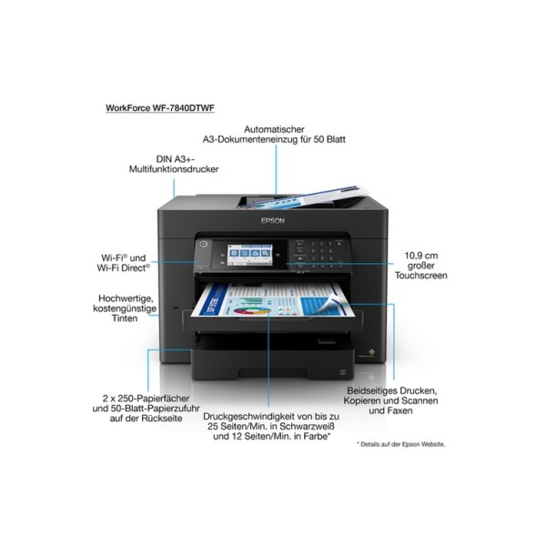 Stampante Multifunzione Epson Workforce WF-7840DTWF - Ink-jet A3 - Stampante / fotocopiatrice / scanner / Fax - Vel. fino a 25 Ipm - ADF - Usb, Lan, WiFi