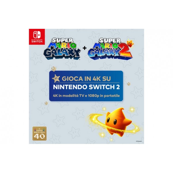 Nintendo Super Mario Galaxy + Super Mario Galaxy 2. Piattaforma: Nintendo Switch, Modalità multiplayer, Classificazione PEGI: 7, Sviluppatore: Nintendo, Data di rilascio: 02/10/2025